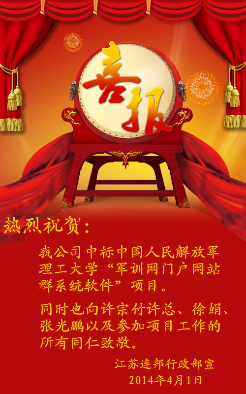 热烈祝贺我公司中标中国人民解放军理工大学“军训网门户网站群系统软件”项目。