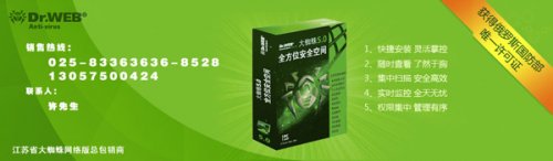 近日,Dr.Web大蜘蛛系列产品正式成为江苏连邦代理销售新一代拳头产品。作为中国正版软件流通主渠道之一,江苏连邦与业界众多著名厂商结成了亲密合作的战略伙伴。在稳定销售原有优势产品的同时,江苏连邦也在积极的开拓新兴市场和新产品,不断地创新思维优化服务,将正版软件流通的渠道带入高效有序健康的发展之路。 此次江苏连邦成功代理道特韦伯(北京)信息技术有限公司旗下Dr.Web大蜘蛛系列产品,有利的推动了连邦在软件代理领域方面多元化多层次化的迈进,也将为Dr.Web大蜘蛛在华东地区的推广和市场占有打开新的局面和发展。Dr.Web大蜘蛛08年4月进军中国市场,凭借其自身雄厚的厂商实力和扎实的产品优势,迅速在国内竞争激烈的杀毒软件市场站稳了脚跟,并被业界誉为“08国内杀毒新神话”。