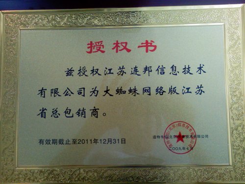 | 热烈祝贺江苏连邦成为江苏省大蜘蛛网络版总包销商 | |||