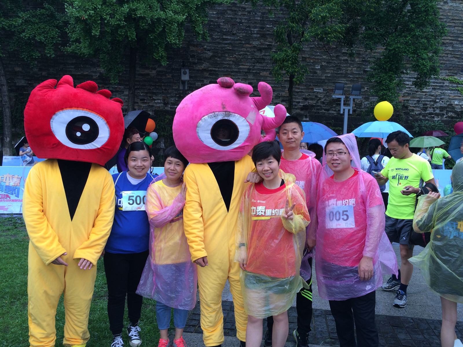 6月25日上午,连邦的家人们参加了我们的证券合作商中泰证券与新浪南京合作举办的“携手中泰奔向里约”的新浪南京云朵跑活动。本次活动在南京玄武湖开跑,活动融合了浪漫云朵、趣味水枪战等多种趣味互动,为所有参加活动的亲们提供了一场别开生面的激情跑步活动。 一大早,天空还是有点朦朦细雨,但这依然阻止不了大家想要奔跑的心。家人们七点多就赶到了玄武湖云朵跑的比赛签到处,大家冒雨领取了装备,还和新浪的大眼睛们拍了合照,大眼睛个子还挺高。 在欢乐的开场舞后,大家一起在健美教练的带领下做了热身运动。一下子跑五公里,对于之前没有什么运动的家人来说,还是有点小挑战的,热身之后,随着起跑的一声枪响,大家都冲出了起点。因本身并非竞赛性质,所以大家都放缓脚步,三个一群两个一组,大家互相鼓励,互相打气,全都跑完了全程,跑的最快的我们的李总,第一个到达了终点,还为我们落后队员打气、加油和拍照。