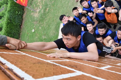 最后在翻越求生墙时,我们被团队里一个个温暖而又坚实的“基石”感动了,他们用自己的肩膀为队友垫起一个个“求生”的机会。当教练宣布我们全员翻越成功,耗时14.43分时,我们一个个都欢呼起来。这一刻,真正感受到的是“付出”,是“坚持”!